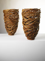 In 1997 Farey quit her part-time job and began to focus professionally on basketmaking. Using materials other than willow wasn't new - "hedgerow basketry" was an established practice - but finding traditional weaving patterns restrictive, she soon developed her own unique style of random weaving, following her instinct and letting the materials themselves suggest shapes which became non-functional, sculptural pieces.